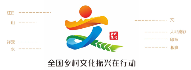 logo设计整体就是一个汉字“文”字。 字体采用书法的形式展现,简明、清晰地突出主题,展现了中国的书法美。细看“文”字的每一笔画,整体设计简洁大气、寓意丰富,元素特征醒目,以彰显“乡村和美图景”为思路,起笔是一轮红日冉冉升起,寓意着祖国强盛和乡村文化的繁荣发展,以“农耕农趣农味”为主线,logo融合了“高山、水波、祥云、粮食”等元素,巧妙构成了每一笔画,体现出大地流彩就是要发挥农民主体作用,加大富有农耕农趣农味的文化项目开发,调动农民参与积极性、主动性,为农民搭建展示风采,创新发展舞台,大力倡导敦亲睦邻、守望相助、诚信重礼的乡风民风,持续提升乡村文化感染力。大地流彩的主题标语以中国印的方式与logo图形配合,展现了中国传统美学和现代美学的融合,与大地流彩提出的举办“新国潮”乡村优秀文化艺术展演紧密契合,希望通过举办“新国潮”乡村优秀文化艺术展演,让更多人了解欣赏到乡村的艺术与文化,也让乡村文化通过艺术的方式得到更加有力的传承和发展。整个logo的色彩是绚丽多彩的,表达中国乡村文化的多姿多彩 ,也寓意“大地流彩”系列活动内容丰富、形式多样。
