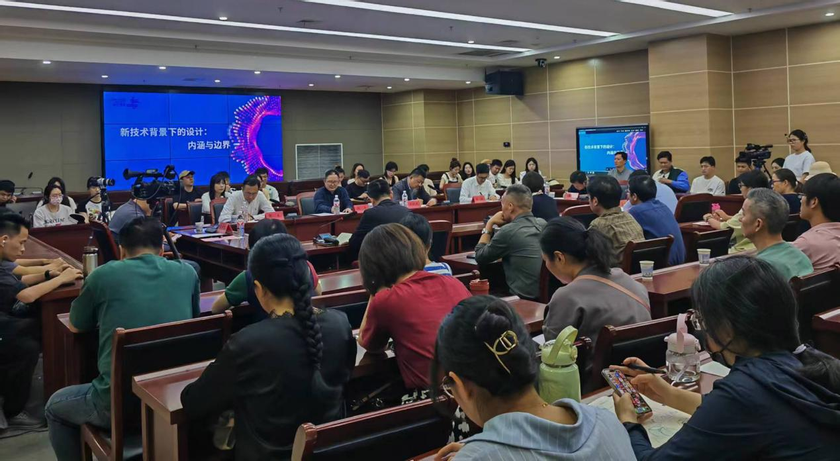 5月29日,学校在图书综合楼202会议室举办了题为“新技术背景下的设计:内涵与边界”的圆桌对话。校党委副书记苏国红教授出席活动并致辞,清华大学美术学院副院长、《装饰》杂志社主编方晓风教授,上海设计之都促进中心董事长张展教授,南京艺术学院艺术教育高等研究院院长顾平教授,中国美术学院工业设计学院院长王昀教授,江西财经大学艺术学院院长李民教授,东南大学艺术学院副院长程万里教授,校研究生部副部长刘宏建教授以及设计学院全体教师、学生代表参加活动。圆桌对话由设计学院院长陆峰教授主持。学校视频号全程同步直播,4500多位同行线上参加。