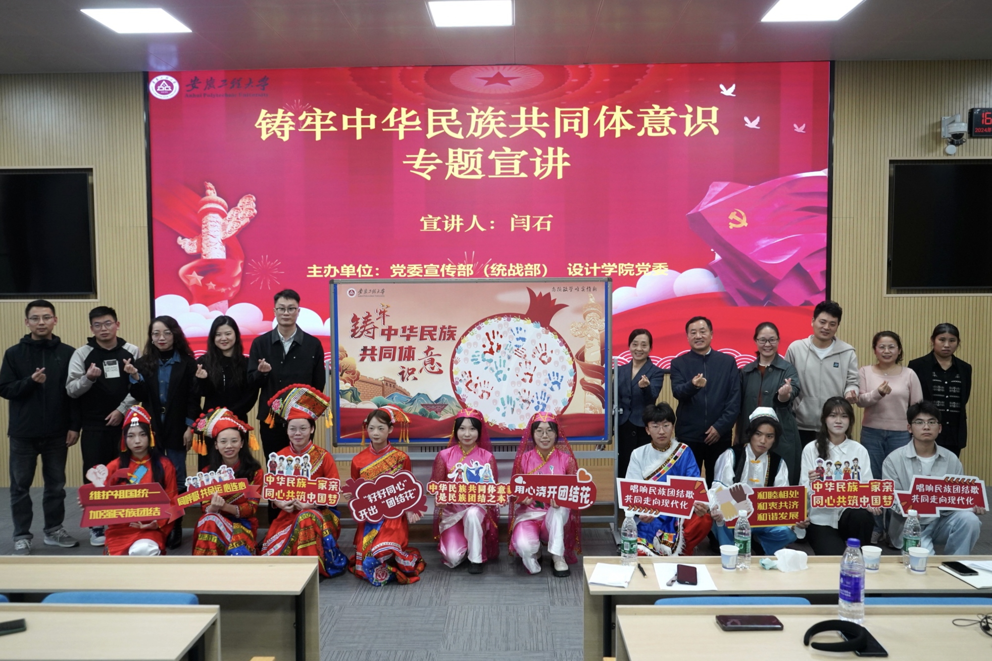 为深入学习贯彻习近平总书记关于加强和改进民族工作的重要思想,10月30日下午,校党委宣传部(统战部)联合设计学院党委在5教217组织开展“铸牢中华民族共同体意识”专题宣讲活动。校党委常委、宣传部(统战部)部长孙浩然出席,设计学院相关负责人、学院全体辅导员及各民族学生代表等150余人参加。