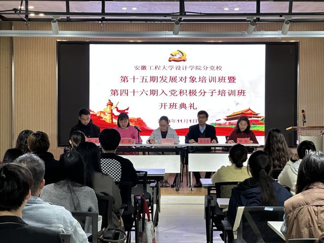 为深入学习贯彻党的二十大和二十届三中全会精神,继续推深做实学校“三全六专”育人实践,切实提升党员发展质量,引导学生“正”起来,11月1日,设计学院分党校第十五期发展对象培训班暨第四十六期入党积极分子培训班开班典礼在七教一楼会议室举行。校党校督导朱文藻、院党委副书记(主持工作)彭海燕、组织员张焱、辅导员、培训班班主任及全体学员参加开班典礼,活动由张焱主持。