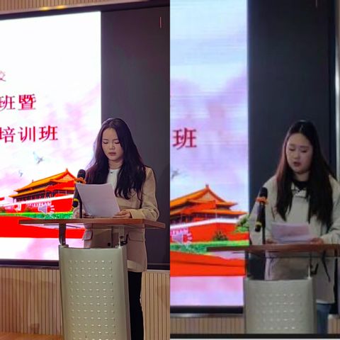 典礼在庄严的国歌声中开始。发展对象培训班班主任姚丽宣读培训班管理细则、入党积极分子培训班班主任徐超宣读培训班考核要求。发展对象代表孙佳欣号召同学们要珍惜这次学习机会,以饱满的热情、严谨的态度、扎实的行动,弘扬青春正能量,传承优良学风,积极践行学校“三全六专”育人实践,争做向上向善的表率。入党积极分子代表从婷婷鼓励同学们积极向党组织靠拢,深入学习习近平文化思想,在学习中提高政治素养,在实践中练就过硬本领,为实现中华民族伟大复兴贡献力量。