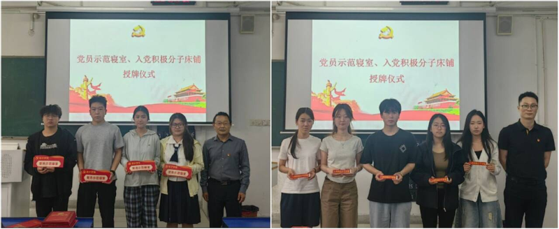 设计学院分党校以荣誉激励学员,学院党委书记杨善祥为“党员示范寝室”的集体授牌,党委副书记陶冶为“入党积极分子床铺”获得者颁发荣誉标识。这一授牌仪式仪式不仅是对学员在党课培训期间展现出的优秀政治素养、严谨生活作风的高度肯定,更是一份面向未来的“责任状”——以荣誉为鞭策,激励全体学员以更高标准要求自我,在日常生活与专业学习中勇担先锋使命,以实际行动践行党的初心使命,发挥模范带头作用,为营造风清气正的校园氛围注入红色动能。