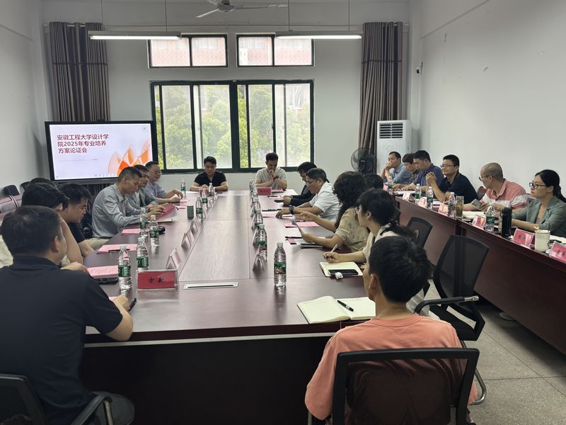为进一步优化专业人才培养体系,提高人才培养质量,5月15日下午2点,设计学院在7-312会议室召开2025年专业培养方案论证会。会议邀请了安徽工业大学艺术与设计学院汪海波教授、安徽师范大学美术学院詹学军教授、安徽师范大学传媒学院动画系主任孙亮教授、安徽师范大学美术学院谭小飞副教授、安徽师范大学美术学院工艺美术系主任方新副教授、安徽得道环境艺术设计有限公司总经理刘皓东、安徽朗道企业形象设计有限公司总经理孙晖、奇瑞造型中心高级主任师汪洋、安徽千仞动画有限公司总经理陈阅兵等来自兄弟院校、行业企业专家,学校教务处负责人、设计学院党政班子成员、各专业负责人以及部分教师代表共同参加论证会。论证会由副院长王小元主持。