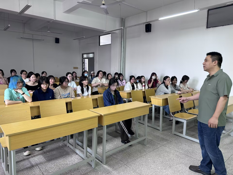为深化产教融合、创新设计人才培养模式,6月17日,设计学院副教授刘华玉在8号教学楼多媒体室开展优秀本科生导师师生交流讲座,面向视觉传达设计及相关专业师生,分享了产教融合实践经验与IP设计创新路径。
